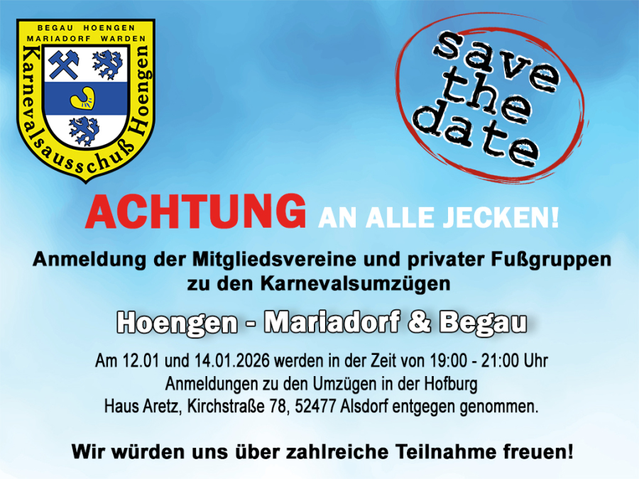 Der Karnevalsausschuss Hoengen e.V. freut sich auf Eure Teilnahme!